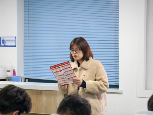 “党的二十大精神”宣讲团成员,教师党员宋潇在南校区10号楼圆厅为同学们开展《学习党的二十大精神,争做有理想、敢担当、能吃苦、肯奋斗的新时代好青年》主题宣讲,与同学们共同学习了党的二十大精神和习近平总书记对青年的殷切希望。与会学生交流了学习感悟,并表示将坚定不移听党话、跟党走,让青春在全面建设社会主义现代化国家的火热实践中绽放绚丽之花。