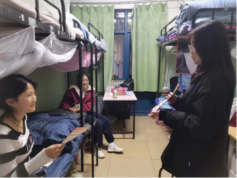 印制了“党的二十大精神”宣传单页,师生党员分别走进大一、大二各个学生宿舍与同学们交流。一方面,党员们同学生们一起认真学习了党的二十大精神,面对面交流了学习感受,对新生们关心关注的入党问题进行解答。另一方面,党员们宣传党规党章,引领学生树立正确的马克思主义信仰以及正确的人生观、世界观和价值观。同时,师生党员还了解了入学以来同学们的生活学习情况,为他们解决学习和生活方面的困惑提供帮助。