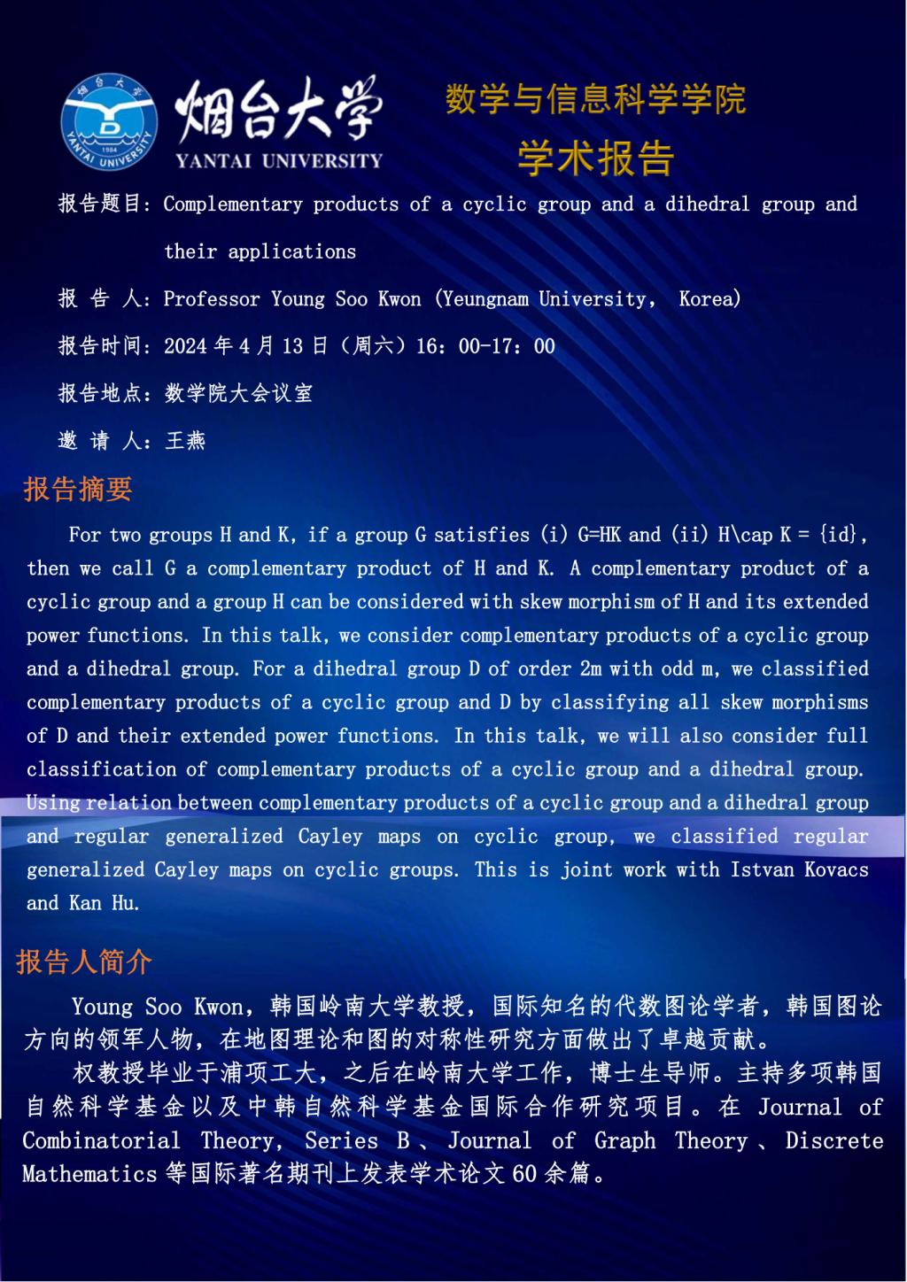 学术报告--Professor Young Soo Kwon (Yeungnam University, Korea)—20240413