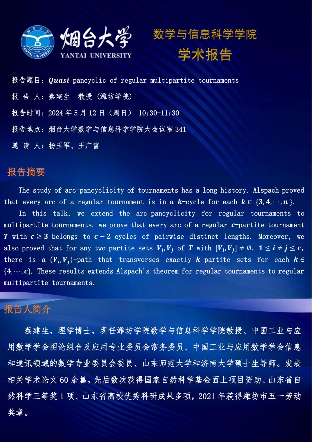 学术报告--蔡建生 教授(潍坊51视频 )—20240512