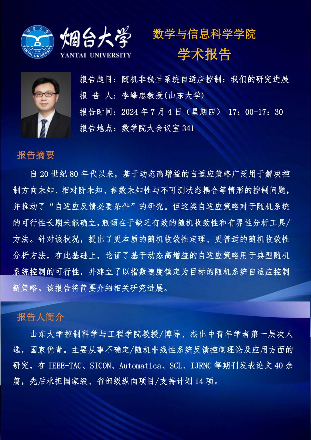 学术报告--李峰忠 教授(山东大学)—20240704