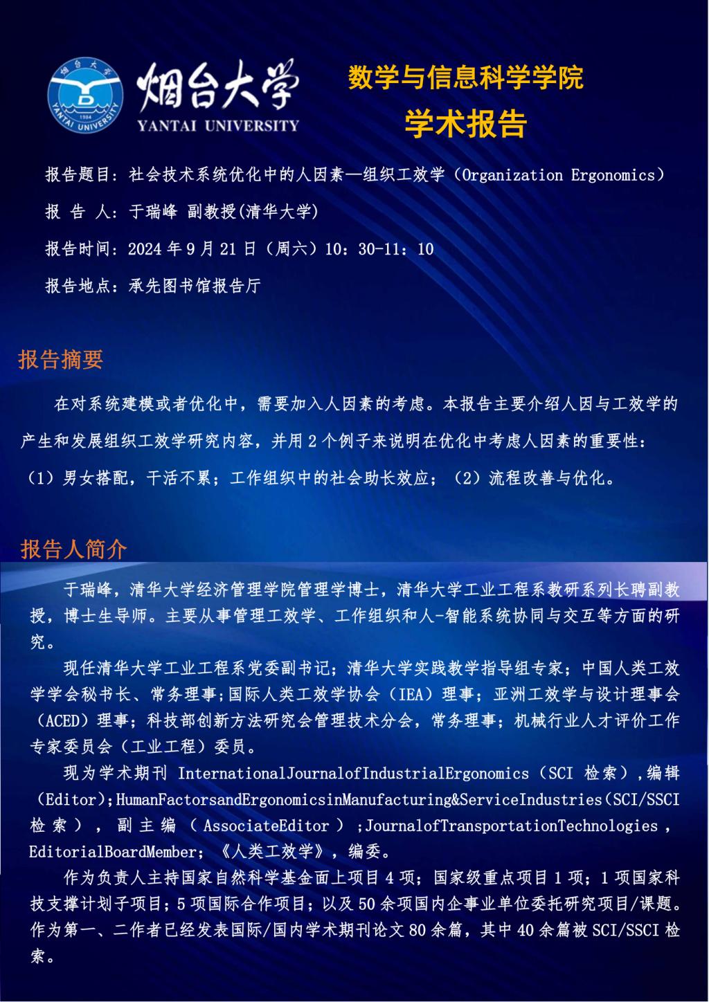 学术报告--于瑞峰 副教授(清华大学)—20240921
