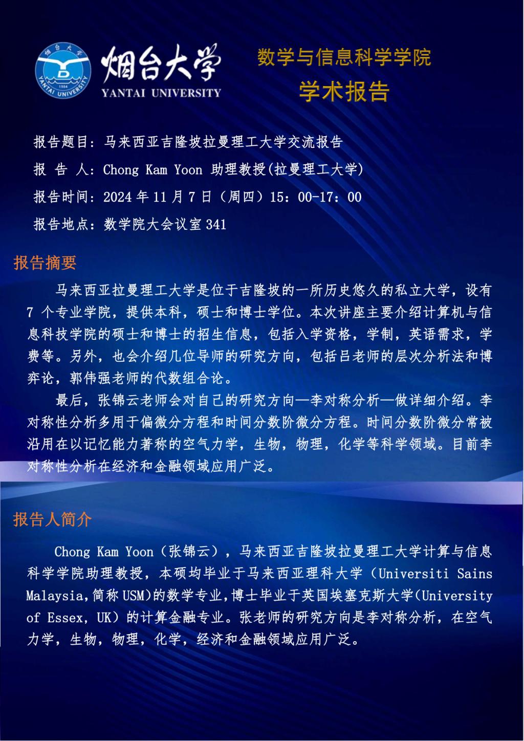 学术报告--Chong Kam Yoon 助理教授(马来西亚吉隆坡拉曼理工大学)—20241107