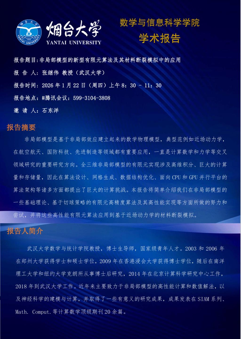 学术报告——张继伟 教授(武汉大学)-20260122