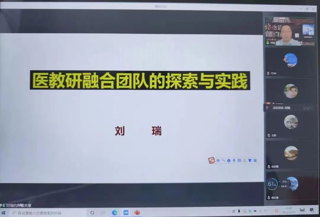 报告会上,刘瑞教授以“医教研融合团队的探索与实践”为题,介绍了其团队怎样以问题为导向,从“如何讲好一堂课”作为教学研究的切入点,进行了长达多年的研究探索,最终创建了一种新的教学方法——“手足并用教学方法”以及“同中之异,异中之同,教无定法,贵在得法”的先进教学理念的实践探索过程,分享了其团队如何以课堂教学比赛为抓手,不断推进高水平教学团队建设的典型经验以及团队收获的累累硕果。刘瑞还针对如何实现医教研融合发展与大家进行了交流,谈了一些看法和心得。