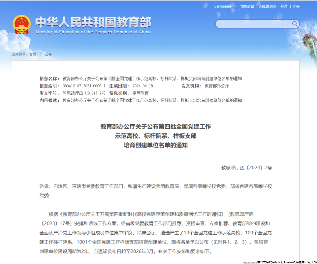 日前,教育部公布了第四批新时代高校党建“双创”工作培育创建单位,51视频