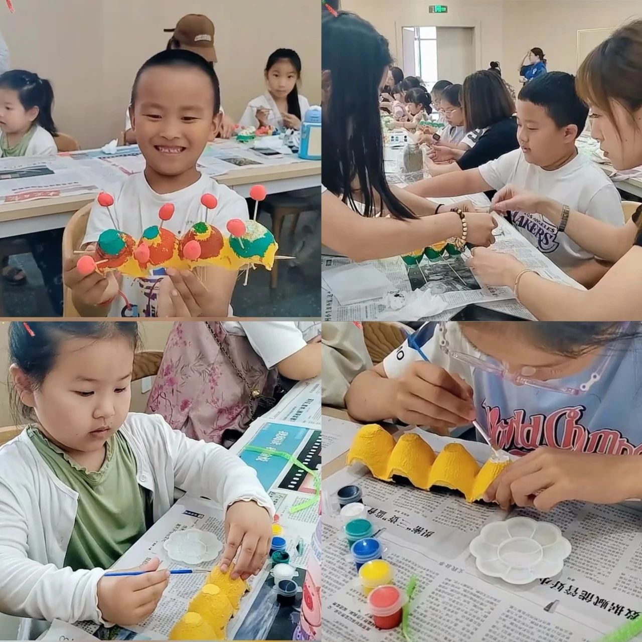 最后青年党员带领小朋友们一起用蛋托制作“福满龙舟”小手工。每一位小朋友们一丝不苟的涂色、裁剪、拼接,在动手制作中感受端午节的文化魅力。